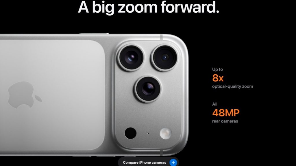 The iPhone 17 Pro Max introduces significant hardware leaps, most notably a 48MP periscope telephoto lens for vastly improved zoom capabilities. The front-facing camera also gets a major upgrade with a new 18MP sensor designed for landscape captures, allowing users to shoot wide-angle selfies and videos without needing to rotate the phone.