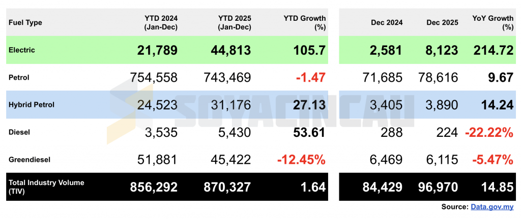 The surge comes as Malaysia’s tax holiday for fully imported (CBU) EVs ended on 31 December 2025.