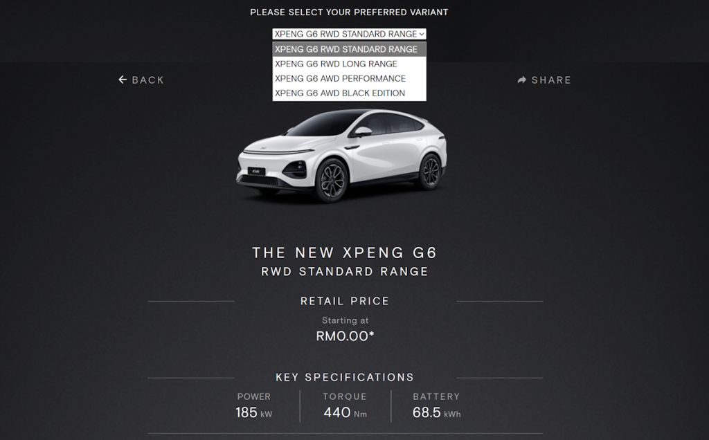 XPeng will be expanding the XPeng G6 FL line-up in Malaysia with the RWD Standard Range variant. Set to be launched on 14 January, it is the 4th option for the model in our market after RWD Long Range Pro, AWD Performance, and AWD Black Edition, which were launched last October.