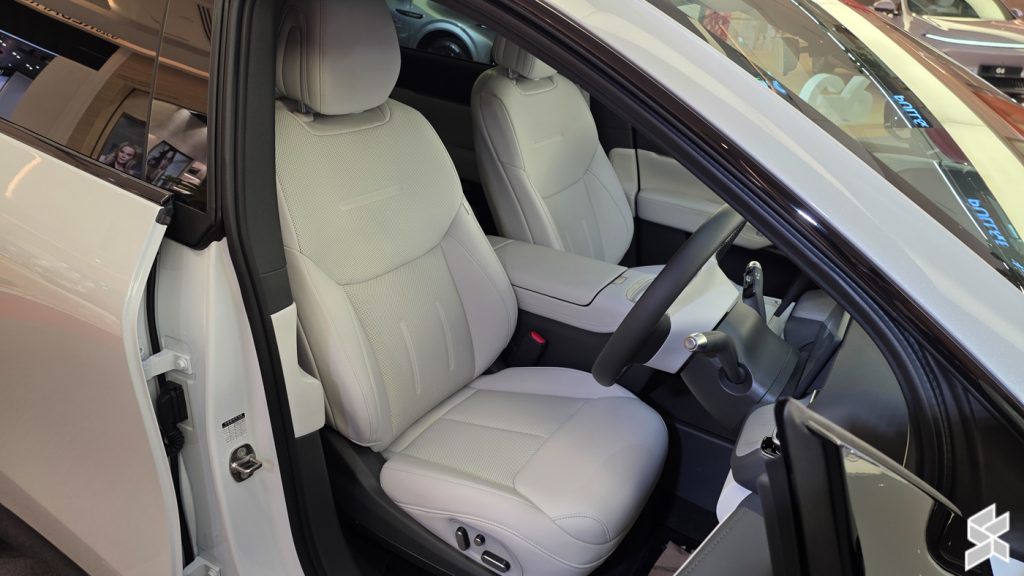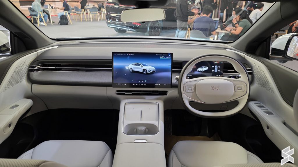 Moving inside, the XPeng G6 RWD Standard Range’s leather upholstery can be had in either Dark Grey or Light Grey shades, depending on the exterior colour option you pick, which includes Arctic White, Graphite Grey, Midnight Black, Silver Frost, and Stellar Purple.