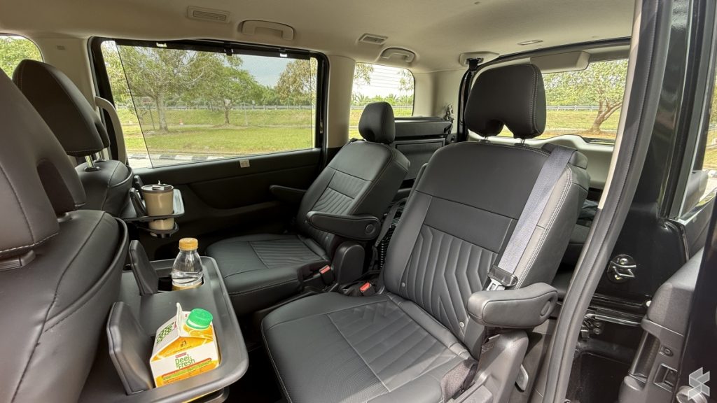 The cabin aims for “Business Class” status with Zero Gravity Seats (now for the driver, passenger, and second row) to minimise fatigue. On the top spec Highway Star variant, the seats are upholstered in a combination of Black Nappa Leather.