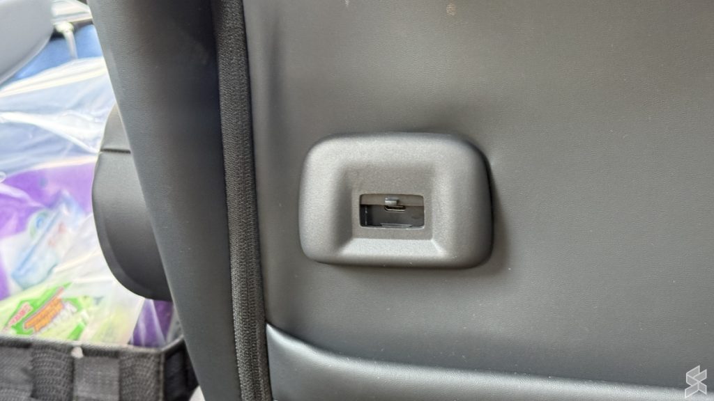 Entertainment is handled by a 14-inch roof-mounted monitor. There’s a total of 6 USB ports, consisting of type A and C, and a wireless charging pad.