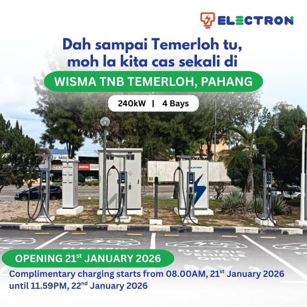 TNB Electron is offering complimentary EV charging as part of its testing phase from 8:00am on 21st January to 11:59pm on 22nd January 2026.