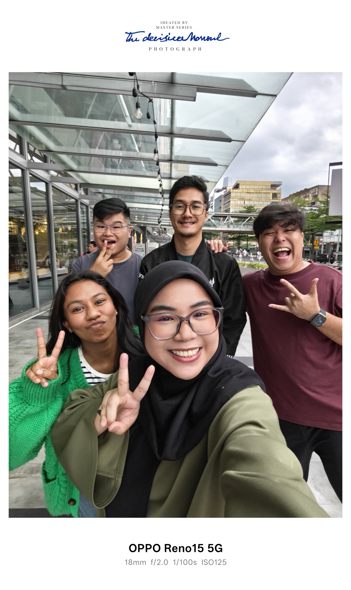 The 50MP Ultra Wide Selfie Camera, available across the whole series, including the Reno15 F, solves this with an industry-leading 100° field of view. By using the 0.6x Golden Selfie Angle, the software naturally adjusts proportions to make faces appear slimmer while capturing more of the background for that immersive fit check look.