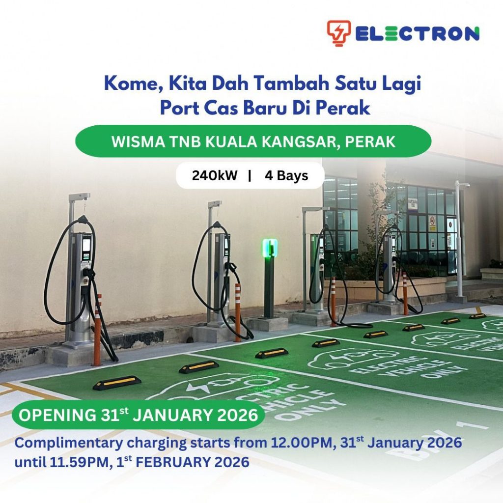 EV users can charge for free at Wisma TNB Kuala Kangsar starting today, 12:00pm 31st January 2026 until 11:59pm 1st February 2026.