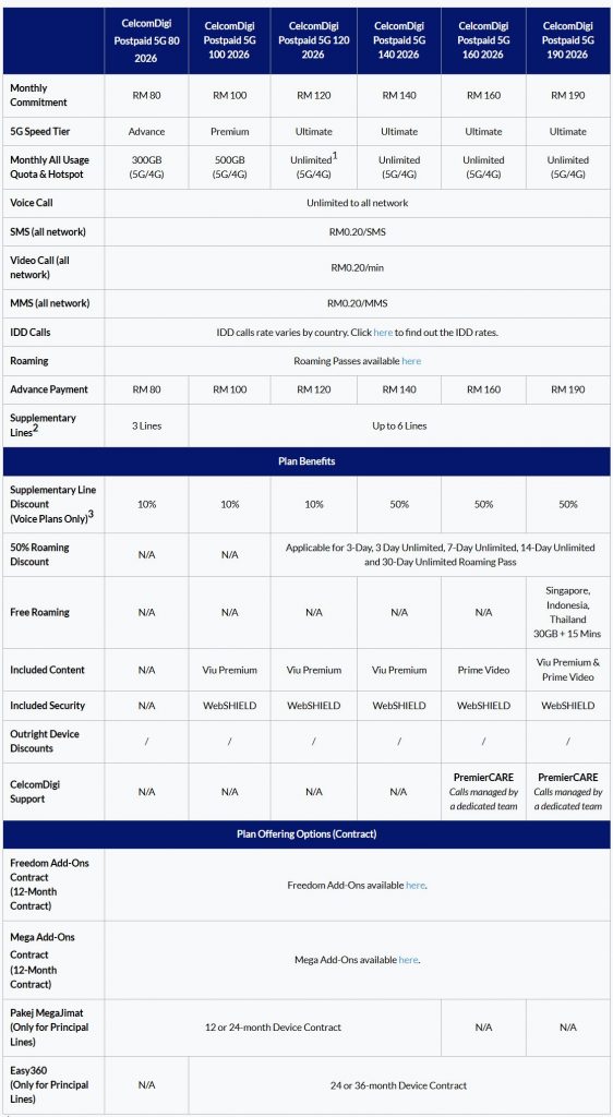 Below is the full CelcomDigi Postpaid 5G plan breakdown for greater clarity.
