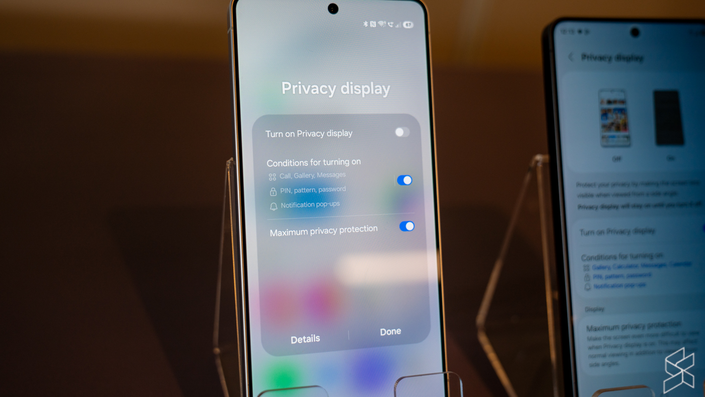 However, the Galaxy S26 Ultra does come with a unique trick up its sleeve — Privacy Display. Made possible with a unique AMOLED panel and Samsung’s AI smarts, this feature works like a built-in privacy screen protector but is smarter. It limits viewing angles so people beside you can’t see your screen. You can turn it on or off, or even apply it to specific apps only.