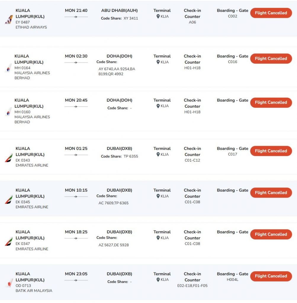CAAM also advises passengers to ensure that their contact details in booking records are accurate and up to date so they can receive notifications of any changes. Typically airlines will notify passengers via email, Whatsapp and SMS. Alternatively, you can also install the airlines’ official app to get the latest updates of your booked flight.
