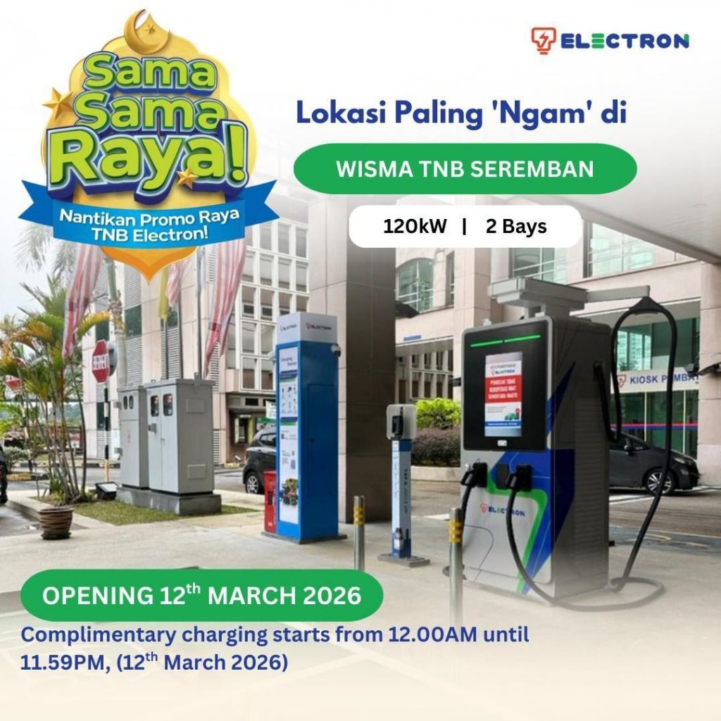 To celebrate the launch of the new charger, TNB Electron is offering free EV charging for one day from 12:00am to 11:59pm on 12th March 2026.