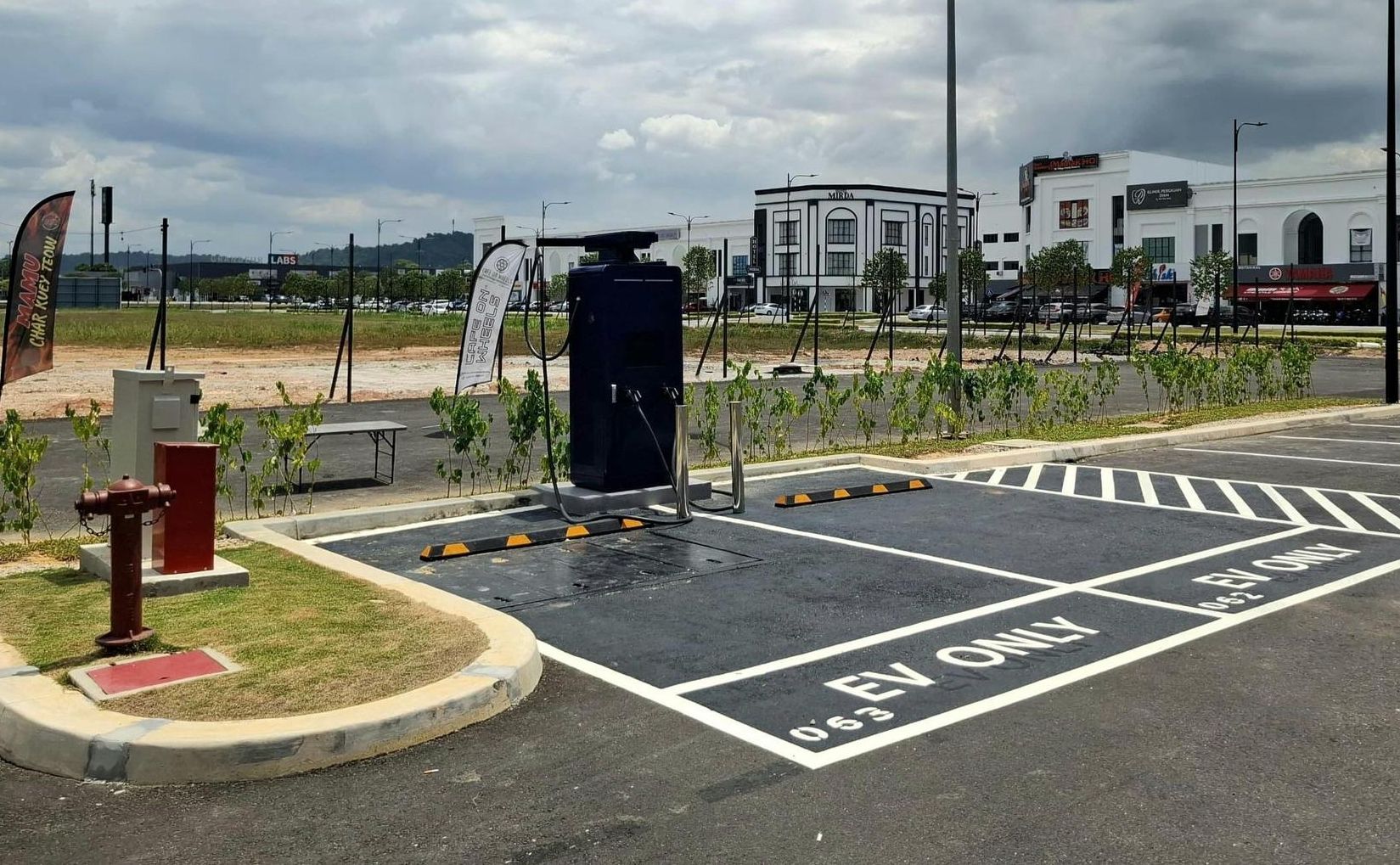ChargEV has installed a 60kW DC Charger with two CCS nozzles at Utopia East outdoor carpark, in front of Focus Point.