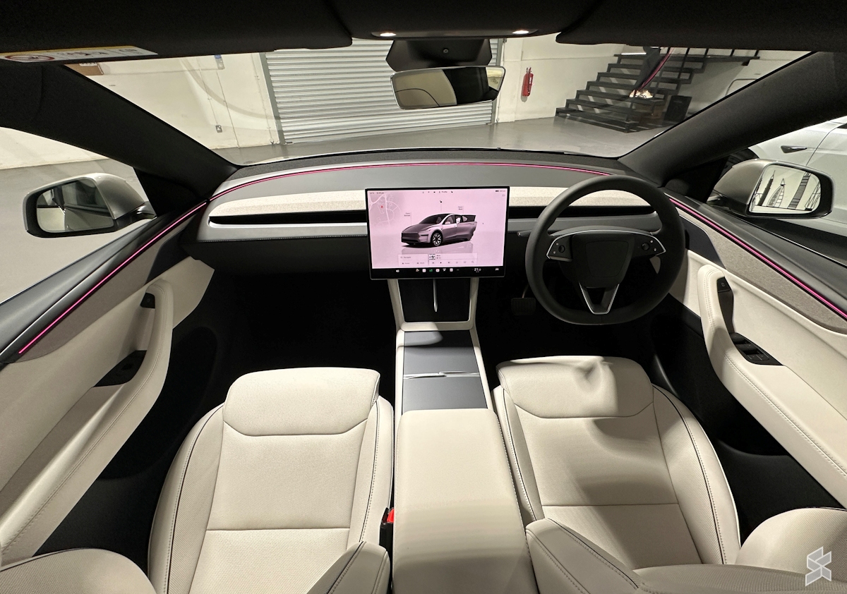 Stealth Grey remained the default exterior colour for Model Y L in Malaysia, similar to the standard Model Y. For a fee, you can choose to have it in Pearl White, Diamond Black, Glacier Blue, Ultra Red, and Cosmic Silver.