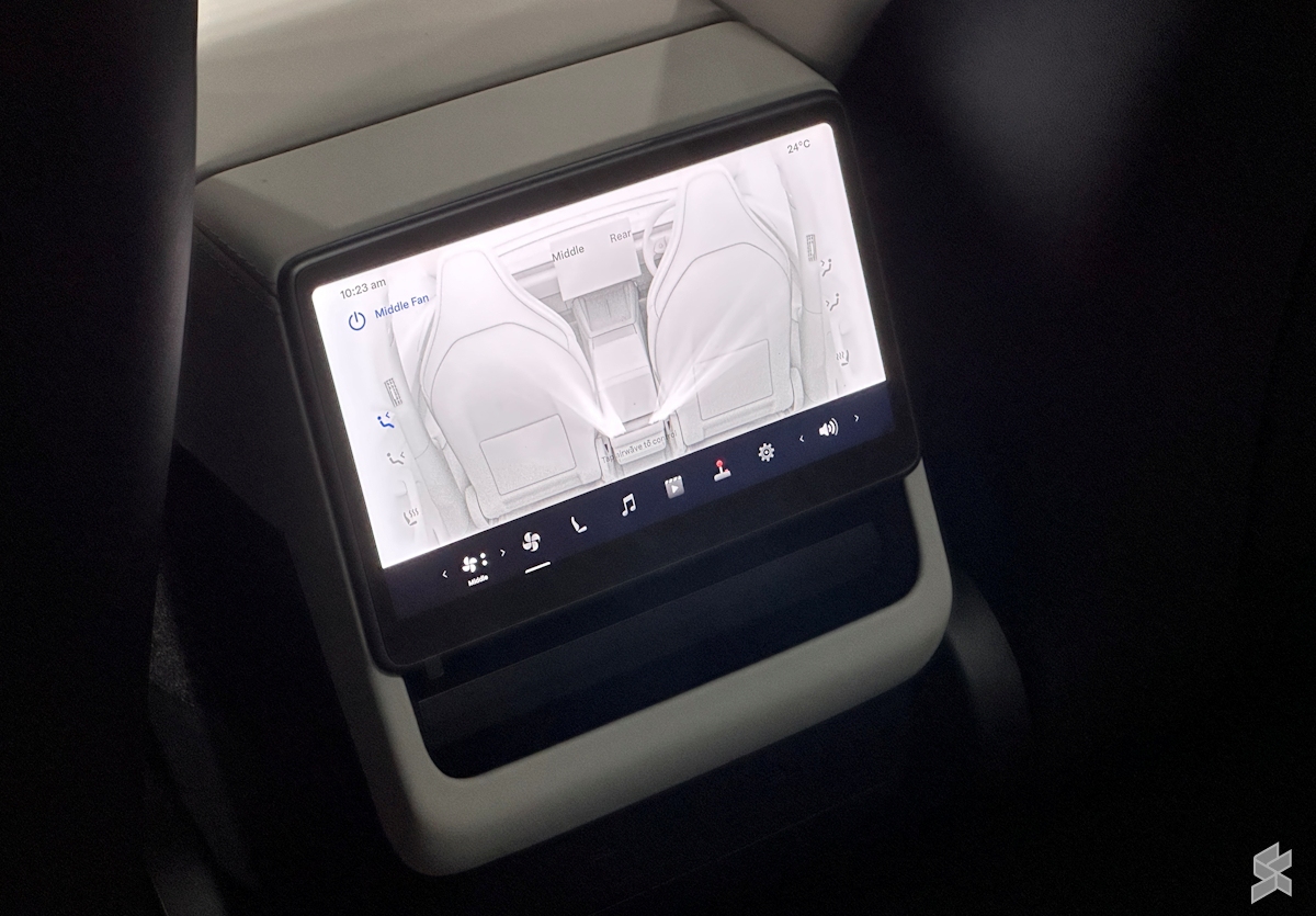 The Model Y L comes with 2nd row captain seats, which have ventilation and heaters just like the front seats. They also feature motorised armrests alongside adjustable headrests, while users can electronically adjust the position of the seats and their recline angles.