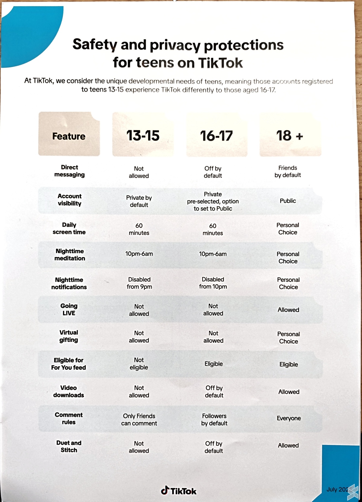 | Feature | Teens (Ages 13–15) | Teens (Ages 16–17) |