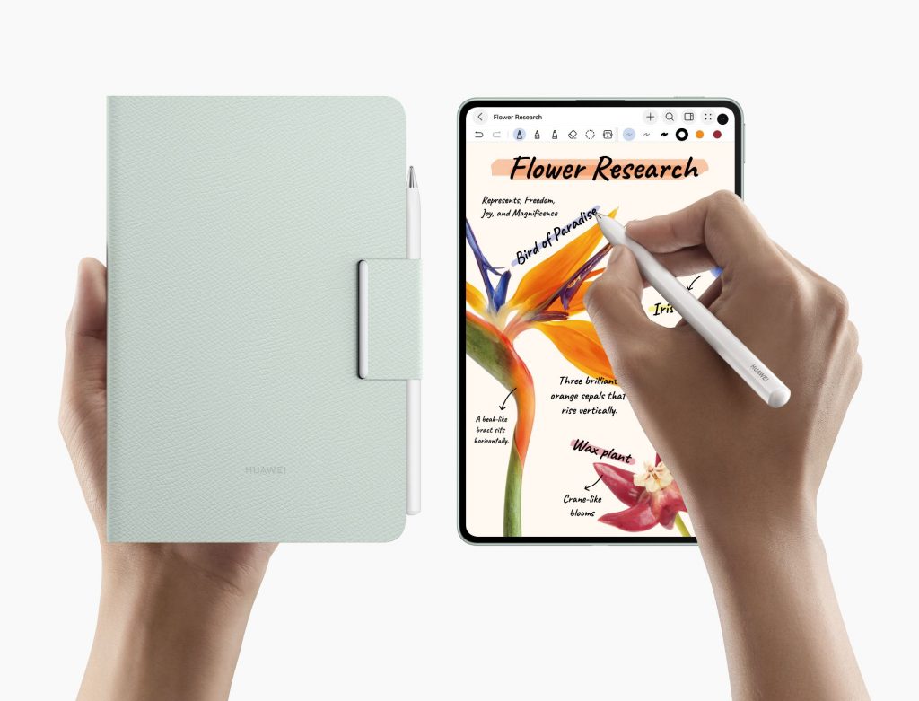 For productivity, the MatePad Mini supports the Huawei M-Pencil Pro, which is bundled as part of the pre-order offer. The stylus includes features such as a Star Ring button for quick app launches, along with pinch and rotation gestures for more intuitive interaction. Huawei also highlights multi-device collaboration within its ecosystem, allowing users to transition between devices more seamlessly.