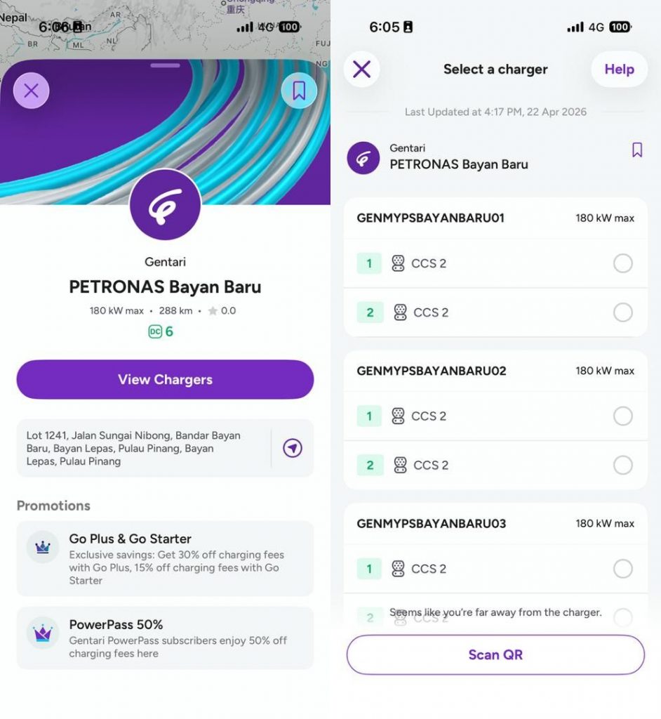 The Gentari EV chargers at Petronas Bayan Baru are priced at RM1.60 per kWh. Gentari Go subscribers can enjoy extra savings depending on their subscribed plan.