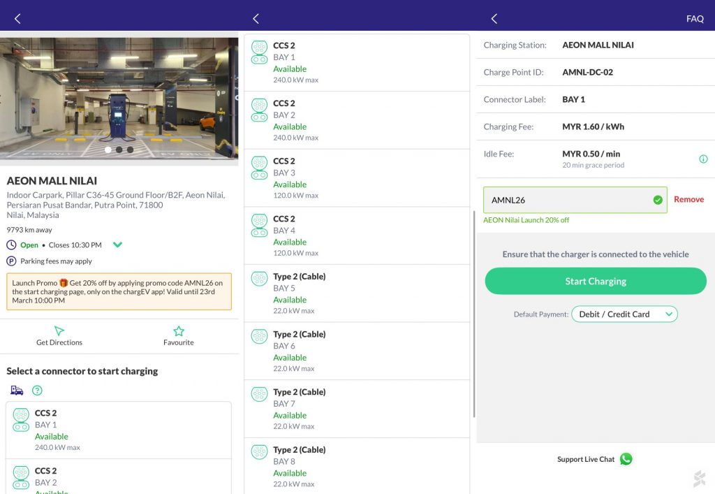 For the Aeon Mall Nilai location, ChargEV now has a 240kW DC Charger and a 120kW DC Charger which are priced at RM1.60 per kWh. Meanwhile, there are now a total of 5x AC charge points capable of up to 22kW, priced at RM1.00 per kWh.