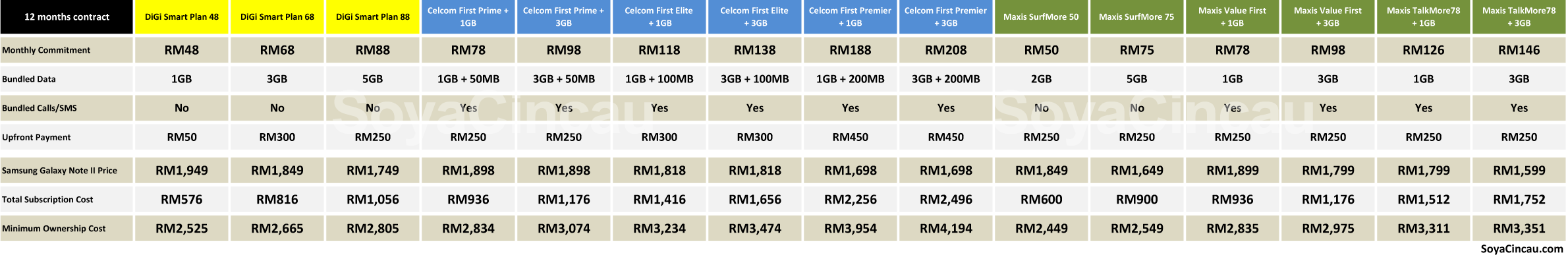 UPDATE: Included Galaxy Note II bundling on Maxis new SurfMore Plan with 12/24 months contract.
